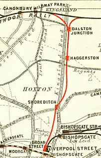 The City Branch was a short spur of the North London Line allowing direct access from the east-west main route of the North London Railway to the terminus at Broad Street in the City of London.