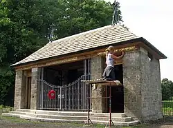 The Stoneham War Shrine was built in 1917–18 in the Avenue Park portion of the parkland by John Willis Fleming, in memory of thirty-six local men killed in World War I, including his own son Richard. (An identical shrine was built at Havenstreet, Isle of Wight). The Stoneham War Shrine was sited on Cricketers' Hill, facing towards St. Nicolas' Church along the line of the former Avenue. The monument was designed by the architect Christopher Hatton Turnor, who had designed the Watts Gallery in Surrey. The Shrine was dedicated on 28 July 1918 by James Macarthur, Bishop of Southampton. During the late 20th century, the Shrine fell into an advanced state of dereliction. In 2011, it was restored to its original condition, and was re-dedicated on 22 May 2011.