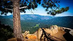 The town is located in a large mid-elevation basin with Wawona Meadow as its centerpiece.[11] Situated in the southwest part of Yosemite National Park, it lies along the South Fork of the Merced River at an elevation of about 4,000 feet (1,200 m). The town is accessible via State Route 41, the main highway from Fresno to Yosemite Valley. Wawona is the closest town to Chilnualna Falls and the Mariposa Grove of Giant Sequoia. It also serves as the main gateway to the southern Yosemite wilderness, with several principal trailheads located here.[12]