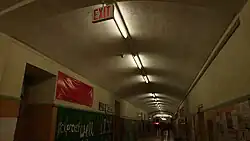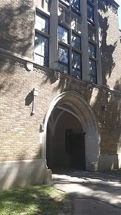 Further evidence of the Gothic Collegiate style can be found in the vaulted ceilings of the hallways, and the arched doorways and windows featured throughout the building. As stated on a plaque inside the main entrance, during the 1960s a major addition was built which significantly altered the rear of the school. These renovations changed little about the original parts of the building. Although once grand, over the decades, the facility has fallen into considerable disrepair and is in need of extensive renovation.[11]