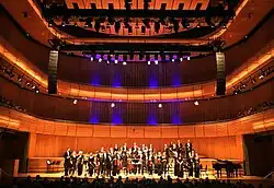 Royal Northern Sinfonia is a British chamber orchestra, founded in Newcastle upon Tyne and currently based in Gateshead. For the first 46 years of its history the orchestra gave most of its concerts at the Newcastle City Hall.[1] It also gave monthly concerts in Middlesbrough town hall and at Stockton & Billingham Technical College in Billingham. Since 2004 the orchestra has been resident at The Glasshouse, formerly known as Sage Gateshead. In June 2013 Queen Elizabeth II bestowed the title 'Royal' on the orchestra, formally naming it Royal Northern Sinfonia.[2]
