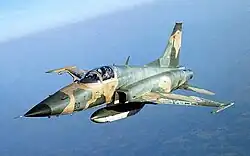 In the same period, Morocco started receiving 16 F-5Es and four F-5Fs, that had been ordered in 1979 thanks to Saudi financing. Deliveries lasted from 1981 to 1983.[98] Shortly after their arrival, the F-5Es were fitted with the same radar warning receivers as the RF-5As and F-5Bs;[99] they also received in-flight refuelling probes.[100] Lastly, Moroccan F-5Es could be equipped with electronic and infrared countermeasures pods, that enhanced their survivability against Polisario surface-to-air missiles.[101] F-5E/Fs were operated by the Borak and Erige squadrons, where they served together with older F-5 versions, as well as the Chahine squadron.[102] During the war in Western Sahara, Moroccan F-5s deployed general-purpose and cluster bombs, unguided rockets, and more rarely AGM-65 Maverick missiles.[103] In total, 15 F-5s are confirmed to have been lost in the course of the Western Sahara War.[96]