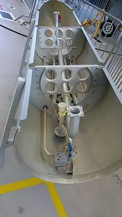 Another highly influential figure was chief engineer Welko Gasich,[15] who convinced Schmued that the engines must be located within the fuselage for maximum performance.[16] This led to the January 1956 PD-2812 version which began to look a lot like the final product, although this version had a long-span low-mounted elevator with notable anhedral. March 1956's PD-2832 moved to a more conventional elevator and had a strongly swept vertical stabilizer. The design underwent several further versions over the next year which experimented with different nose designs and continued to lengthen the fuselage. The final design, PD-2879D, emerged in December 1956.[13]