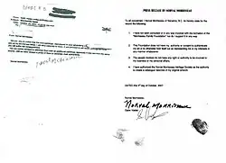 - ^ "Norval Morrisseau Related Litigation". Archived from the original on December 29, 2012. Retrieved December 25, 2012.