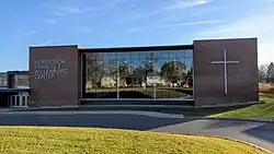 Notre Dame was established in 1959 by the Xaverian Brothers. The land that the school was built on was the former location of a military hospital. Initially, the school owned the land currently occupied by the Utica Business Park, but sold most of it to the city, creating its current boundaries. Originally just a high school, in 1994 both local Catholic junior high schools merged with Notre Dame and moved to the high school building.[1]