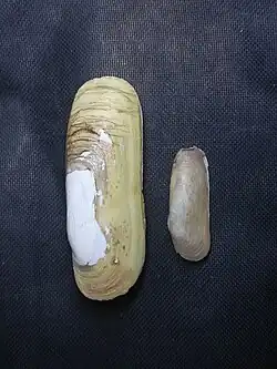 | Novaculina chinensis (right) compared to Sinonovacula constricta (left) | |