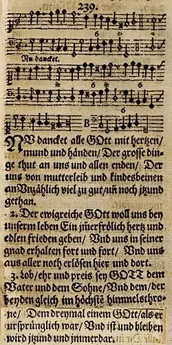 The melody is sometimes attributed to Rinkart,[5] but it is usually considered to be by Johann Crüger,[6] who first published it.[2]