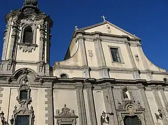 Work on the building did not begin until 1668, during the reign of Charles II, and was under the direction of Sebastián Herrera Barnuevo. The finance for the construction was provided by the illustrious Baron of Gilet, in the Kingdom of Valencia, Pedro Arnaldo Llansol de Romaní, following his elevation to Marquis of Llansol in 1690. The facade is clearly somewhat influenced by the famous Church of the Gesù of Vignola in Rome and is considered one of the most complex and elaborate buildings of the Madrilenian Baroque.[2]