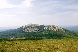 Nurgush is a subrange of the Urals. It stretches roughly from SSW to NNE for 50 kilometres (31 mi) in the southern section of the long Ural chain. The range stretches between the southern shore of lake Zyuratkul to the mouth of river Berezyak. The highest point is 1,406 metres (4,613 ft) high, rising in the Bolshoy Nurgush section located in the northern part. Maly Nurgush is the southern section. The southwestern limit of the range is marked by the valley of river Yuryuzan.[5][4]
