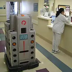 A nurses' station is an area of a health care facility (such as a hospital ward or nursing home), which nurses and other health care staff work behind when not working directly with patients and where they can perform some of their duties. The station has a counter that can be approached by visitors and patients who wish to receive attention from nurses. Stored behind the table are materials for which access is limited to health care staff, such as patient files, medicines, and certain types of equipment.[1]