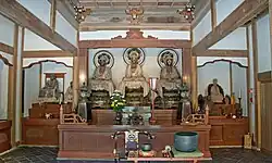 | Amida Nyorai (west) | Dainichi Nyorai (principal deity) | Ashuku Nyorai (east) |