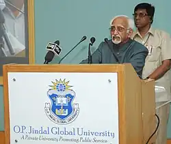 ![]() Mohd. Hamid Ansari delivering the inaugural address at the “Conference on Federalisms and Localisms at O.P. Jindal Global University | |