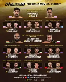 - ^ "Sam-A to rematch Prajanchai at ONE Friday Fights 22". asianmma.com. 24 May 2023. Retrieved 2023-05-24.