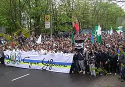 The greeting "Glory to Ukraine! Glory to the heroes!" (Slava Ukrayini! Heroiam slava!) was used among members of the Organization of Ukrainian Nationalists (OUN) and Ukrainian Insurgent Army (UPA).[42]