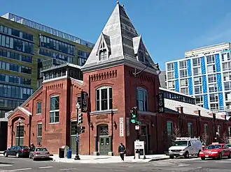 O Street Market, also known as Northern Market,[2] is a historic structure located at 1400 7th Street NW in the Shaw neighborhood of Washington, D.C. Built in 1881, it is one of three 19th-century public market buildings still standing in the city, along with Eastern Market and Georgetown Market. The market was listed on the District of Columbia Inventory of Historic Sites in 1968 and the National Register of Historic Places in 1995. The most distinctive architectural element of the Gothic Revival building is its corner tower on 7th and O Streets.
