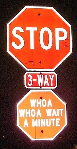 19. ^ Stop me if you've heard this one: Traffic signs offer humor with a message Chicago Sun-Times, September 29, 2007