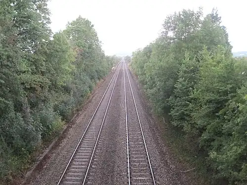 ![]() The site of the station, looking southwest towards Grange Court, in 2013 | |||||