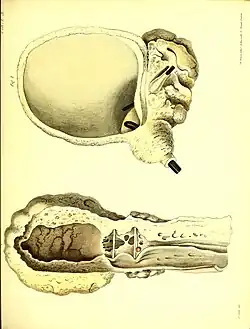 The Norwich surgeon John Green Crosse was fascinated by cases of bladder stones, and in 1833 produced an award-winning essay for the Royal College of Surgeons's Jacksonian Prize, entitled the "Formation, Constitution and Extraction of the Urinary Calculus".[52] Short was commissioned to produce the drawings;[53] he included O. Short, del. on each page.[54][note 7]