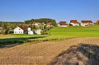 Politically, Obfelden is the youngest municipality in Affoltern, though settlements in the area date back to the Alemannic-Franconian period in the 5th century AD. Early activity coalesced around five hamlets: Bickwil (first mentioned in 1246 as Bickewilare), Oberlunnern and Unterlunnern (1257 Lundenerun and Lunderun inferioris), Wolsen (1311 Wolunsun), and Toussen (1325 Thunsen).[3] These five hamlets were known collectively as being ob dem Feld ("over the field") from neighbouring Ottenbach; most fell under the jurisdiction of Maschwanden, although Toussen and part of Unterlunnern came under the Zürich Freiamt. Both of these areas were merged into Knonau (today's Affoltern district) in the sixteenth century, when the hamlets of Obfelden became a part of the nearby parish of Ottenbach.[3]