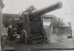 Obice da 305/17 was an Italian howitzer (sometimes classified as mortar) used during World War I. Produced by the Armstrong works in Italy between 1914 and 1917, approximately 30-44 were built. Originally the Obice da 305/17 Modello 15 was a stationary coastal defense gun but was later adapted to a mobile siege artillery role.[2] A number also served during World War II.