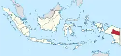![]() | ![]() | | Highland Papua Highland Papua Province | Province of Indonesia | Indonesian: Papua Pegunungan | Jayawijaya Regency | 1,408,641[32] | 108,476 km2 (41,883 sq mi) |