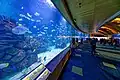 The Oceanographic is the largest complex of its type in Europe, spanning 110,000 square metres (1,200,000 sq ft) and holding a capacity of 42,000,000 litres (11,000,000 US gal) of water,[1] including a 26,000,000-litre (6,900,000 US gal) dolphinarium and a 7,000,000-litre (1,800,000 US gal) ocean tank with sharks, rays and other fish.[1] It is home to 45,000 animals from 500 different species—including sharks, penguins, dolphins, sea lions, walruses (until 2019), beluga whales, birds, reptiles and invertebrate—all inhabiting nine two-tiered underwater towers representing the Earth's major ecosystems. The aquariums utilize sea water pumped from the La Malva-Rosa beach.