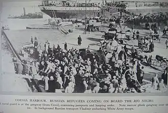 ![]() Refugees of Odessa and White Army troops trying to flee from the Red Army. | |||||||||