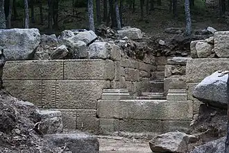 Residences and temples of the Odrysian kingdom have been found, particularly around Starosel in the Sredna Gora mountains.[193] Archaeologists have uncovered the northeastern wall of the Thracian kings' residence, 13 m in length and preserved up to 2 m in height.[194] They also found the names of Cleobulus and Anaxandros, Philip II of Macedon's generals who led the assault on the Odrysian kingdom.[194]