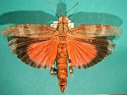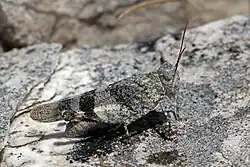 Oedipoda germanica, sometimes known as the "red-winged grasshopper" (although the name also may be used for O. miniata), is a species of short-horned grasshoppers belonging to the family Acrididae subfamily Oedipodinae.
