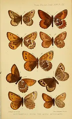 - Oeneis magna dubia Elwes, 1899 (Altai, Sayan, western Tuva, western Mongolia)