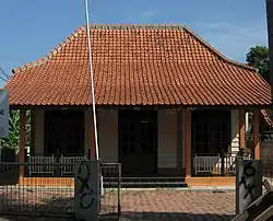 In Yogyakarta, the unemployed Oerip took up orchid gardening. Soon after arriving, he and his wife bought a villa in Gentan, north of the city. Although the villa was small, the couple used its 2 hectares (4.9 acres) of land to open a large flower garden,[41] with their income subsidised by Oerip's pension from the KNIL.[42] At his villa, named KEM (for Klaarheid en Moed, or "Purity and Bravery"), Oerip often received guests, both military and civilian, from whom he received information about current events and to whom he gave advice regarding military matters and politics.[43] In 1940, the pair adopted a four-year-old Dutch girl named Abby from an orphanage in Semarang.[44]