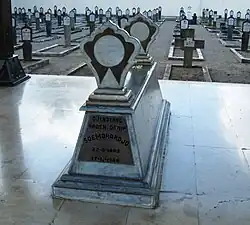 After several months of growing steadily weaker and undergoing treatment from Dr Sim Ki Ay,[81] on the evening of 17 November 1948 Oerip collapsed and died from a heart attack in his room in Yogyakarta. After a night-long viewing he was buried the next day in Semaki Heroes' Cemetery and posthumously promoted to general.[2][80][82] When Sudirman threatened to resign in 1949, he blamed Oerip's death – as well as his own tuberculosis – on the government's inconsistency during the revolution.[83] Oerip was survived by his wife and adopted daughter. Abby died of malaria in January 1951,[84] and Rohmah died on 29 October 1977 in Semarang; she was buried in Ungaran.[31]