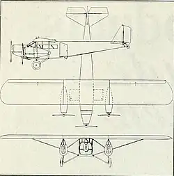 Both the rectangular cross-section fuselage and tail had welded Cr/Mo steel tubes structures and were fabric covered. The 13 ft (4.0 m) cabin accommodated six including a crew of one or two in the front row of side-by-side seats. The control column was of the throw-over type so it could be flown from either side. Alternatively, a fifth passenger could sit beside the pilot. The main landing wheels were equipped with differential brakes; a single settable lever between the front seat applied the required braking resistance but when the rudder pedal were operated the resistance was applied differentially. Cabin entry was by an angular door at the rear, where there was also a toilet. The tail surfaces were conventional with a triangular fin and tailplane, the latter mounted on top of the fuselage. The control surfaces were trapezoidal.[1][2]