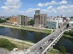 Skyline of Okazaki City and Oto River -