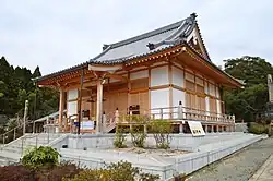 Oki Kokubun-ji (隠岐国分寺) is a Buddhist temple in the Ikedafuro neighborhood of the town of Okinoshima, Shimane Prefecture Japan. It belongs to the Tōji Shingon-sect, and its honzon is Shaka Nyōrai. It is the successor to one of provincial temples established by Emperor Shōmu during the Nara period (710 – 794).[1] Due to this connection, the foundations of the Nara period temple which overlap the present day complex were designated as a National Historic Site in 1934, with the area under protection expanded in 2018.[2] It is especially known for the Renge-emai dance (隠岐国分寺蓮華会舞), a rural bugaku performance with masks and costumes suggesting a Heian period origin, that is a National Intangible Folk Cultural Property) that is held every April 21.[3]