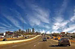 The "Core-to-Shore" project was created to relocate I-40 one mile (1.6 km) south and replace it with a boulevard to create a landscaped entrance to the city.[36] This also allows the central portion of the city to expand south and connect with the shore of the Oklahoma River. Several elements of "Core to Shore" were included in the MAPS 3 proposal approved by voters in late 2009.