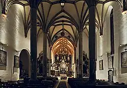 The construction subsequently lasted until at least the beginning of the 16th century, which was confirmed by dendrochronological research of the truss above the sanctuary (dating to the years 1499 to 1500).[15]: 13–17 The altar was made between 1500 and 1510.[15]: 39
