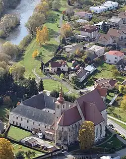 In the 18th century, the Okolicsányi family again appeared as patrons, when they furnished the interior with furniture bearing their heraldic symbols. In connection with the construction, reconstruction or painting of the altars in the church, the following names are mentioned: "Ladislav Okoličányi, son of Ján and previously advisor to the royal majesty, nobleman Ján Okoličányi, nobleman Jozef Okoličányi and Mikuláš Okoličányi" (Urban 1759).[23] The building also contains the tomb of the Okolicsányi family in the western part of the side chapel.