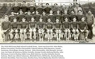 The Old Forge Blue Devils of Old Forge High School have a long, rich history in the area of sports. During the 1950s and 1960s, Old Forge dominated the area in football and basketball, winning several league championships and conference titles.[11] During the 1950s, Old Forge compiled the highest winning percentage for football in the entire state.