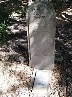 The family that established the cemetery are descendants of Second Fleet transportees, Thomas Edward Higgins and Eleanor McDonald. Eleanor's first husband, First Fleet convict David Killpack, was granted 32 hectares (80 acres) in the Field of Mars district (modern Carlingford). Eleanor and David were the first free settlers within the present day boundaries of Hornsby Shire Council. Following David's death in 1798, Eleanor sold part of the land but continued to farm some 30 acres of it in her own right. In 1799, she married Thomas Higgins, their son, Thomas Edward II being born in 1800. Thomas and Eleanor remained on their farm until their deaths in 1828 and 1835 respectively. Thomas Edward II was made a district constable for the Field of Mars district and in 1823 was promised a grant of land that included a relatively fertile valley west of the ridge now occupied by the Hornsby shopping centre. He is thought to have named the grant Old Man's Valley. In taking up the grant, Thomas Edward II became the first settler in the Hornsby area. After his death, ownership of the land passed to his son, Thomas Edward III whose large family formed the basis of the community that was established in the valley. It is believed that Thomas Edward III established the cemetery when his youngest son, Harrold died. It is further believed that the cemetery was consecrated as an Anglican burial site when Thomas himself was interred there in 1885. However the Anglican Diocese of Sydney has no record of this consecration, although it is acknowledged that a local consecration may have taken place and the local records lost. The earliest dated inscription in the cemetery records the death of Ann Elizabeth Harrington (daughter of Ann and Matthew Harrington) who died aged 14 months in 1871. Ann was not, however, buried in the cemetery, but within the orchards on the Harrington property and the inscribed stone is a memorial rather than a grave marker. In the period of its use from 1879 to 1931, 25 persons are known to have been interred there and it reliably recalled that a family midwife, Ann Harrington, buried some still-born and other non-surviving babies within the confines of the cemetery. It is also believed by family members that the cemetery was used for the burial of stillborn babies and other infants in unmarked graves near the east boundary. The establishment and use of the cemetery appears to be a direct response to the isolation of the valley and the difficulties of transporting the dead to the existing formal burial grounds, as well as a reflection of the strong connection between the Higgins family and the valley.[1][3]