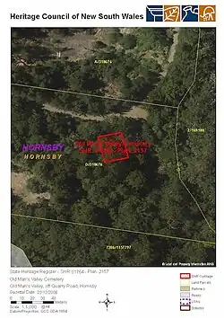 - ^ a b c d e f g h i j k l m n o p q r s t u v w x y z aa ab ac ad ae "Old Man's Valley Cemetery". New South Wales State Heritage Register. Department of Planning & Environment. H01764. Retrieved 2 June 2018.