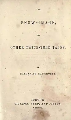 The Snow-Image, and Other Twice-Told Tales is a collection of short stories by American author Nathaniel Hawthorne. Released in late 1851 with a copyright of 1852, it is the final collection of tales by Hawthorne published in his lifetime.