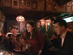 Bruce Elliott is a painter and the current owner of the bar.[4][5] Elliott inherited the bar from a previous owner on the condition that the bar not be changed.[1][6][7] The walls of the bar are filled with portraits of regular bar-goers and famous patrons (such as Stephen Colbert, Bill Murray, John Belushi and Dan Aykroyd—many of whom had been working at the Second City Theatre also located on Wells and North Avenue). Other paintings include lewd political satire of well-known people such as Rod Blagojevich being strip searched,[8][9][10] Sarah Palin posing naked on a polar bear rug,[11] Vladimir Putin dancing as a ballerina[12] or Kim Jong Un and Dennis Rodman in handcuffs[12] (also painted by Elliott).