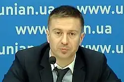 Oleksandr Volodymyrovych Danylyuk (Ukrainian: Олександр Володимирович Данилюк; born September 26, 1981) is a Ukrainian public figure, lawyer, human rights activist. Coordinator of the public movement (now party) "Spilna Sprava" (Common Cause).[1] Chief Advisor to the Minister of Defense of Ukraine Valeriy Heletey on a voluntary basis from July 15 to November 5, 2014.