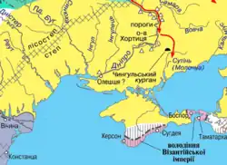 - ^ a b Buiskykh, Serhii Borysovych; Iievlev, Mykhailo Mykhailovych (1991). "Про осіле населення понизь Дніпра та Південного Бугу у X—XIII ст" [Settled population of the lower Dnipro and south Buh in the 10th-13th cent.] (PDF). Arkheolohiia (in Ukrainian). 4: 89–104. Retrieved 16 December 2022 – via The All-Ukrainian Рublic Association of Archaeologists .