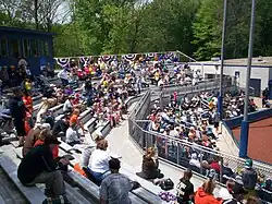 The first game at the current baseball field, which had no official name, was May 3, 1966 against the Ohio State Buckeyes.[3] Initial plans called for the new field to be adjacent to a new football stadium, but the stadium would later be built at a different site further east as Dix Stadium.[4] By 1969, the new varsity baseball field was referred to as Allerton Field as Allerton Street was nearest street at the time of the field's construction. It was a natural grass field with wooden bleacher seating for approximately 700 people. After the conclusion of the 1989 season, a grandstand was added behind home plate, replacing the original wooden bleachers and increasing the seating capacity to approximately 1,000. The project also included a press box, new concession stand, a warning track on the field, a new outfield fence, and updates to the infield, completed prior to the 1990 season.[5] In September 1989, the university named the field in honor of Kent State alumnus Gene Michael, who played and managed professionally in Major League Baseball.[6] It was formally dedicated April 23, 1990.[7]