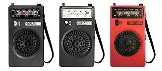 The first model of the series, designed by Mykola Lebid in 1977.[1] The radio has a reliable, user-friendly design and was popular in the USSR. Today receivers are still used by some owners, more than 40 years after the start of production. High frequency band ("KB") 30.6-31.8m, Medium frequency band ("СВ") 186.7-571.4m. An audio frequency power amplifier based on four transistors: КТ315Б (first stage), КТ209Б (second stage), КТ315Б and КТ209Б.[2]