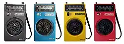 Redesigned, two HF bands instead of one. High frequency band 1 ("KB1") 40.5-50.8m, High frequency band 2 ("KB2") 24.8-31.7m, Medium frequency band ("СВ") 186.7-571.4m. Radio receiver was produced in two versions, with audio power amplifier on four or five transistors. The second version of the audio power amplifier uses an additional КТ315Б transistor to stabilize the output stage mode.[3] Known colors - black, white, blue, yellow, green, red, brown, burgundy.