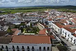 In 1964, Olivenza became one of the first municipalities in the province of Badajoz that earned a heritage protection status of conjunto histórico-artístico for their historic cores.[40] The report for the declaration cited that the city of Olivenza, "surrounded by a beautiful landscape of pasture and farmland, dominated by the imposing castle's keep", "offers a number of buildings, enclosures and places of notable importance in the monumental aspect".[41]