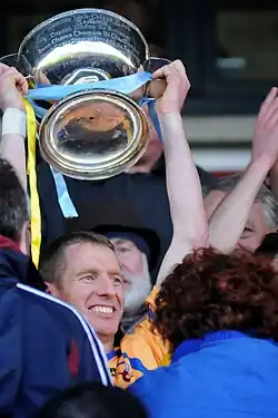 ![]() Canning holding the 2013 Galway Senior Hurling Championship trophy on behalf of Portumna at Pearse Stadium, Galway | |||